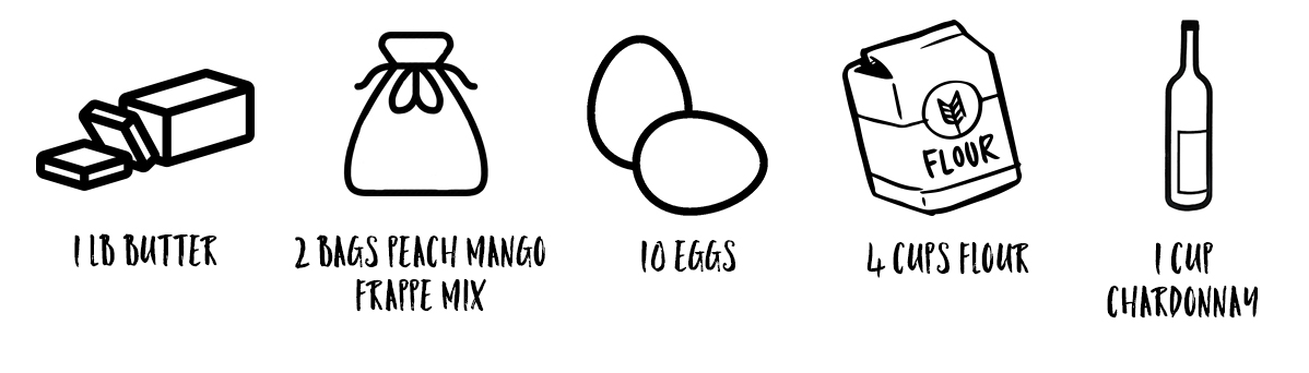 Did you know that Nectar of the Vine's wine frappés can be used for more than just making wine slushies? You can use them when you cook and bake too! Check out our simple recipe below on how to make a Peach Mango Pound Cake with our Flavor of the Month, Peach Mango Wine Slushy Mix: